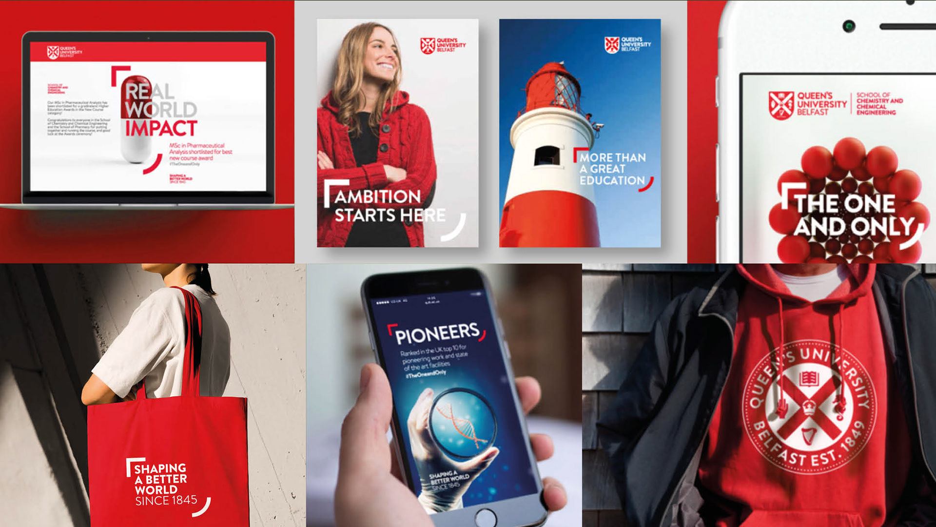 Creative Lead & Brand Guardian This project refreshed the Queen’s University Belfast brand by sharpening its positioning and bringing its strategy to life. The result was a clear, contemporary identity that helped the university communicate its academic excellence, civic purpose, and global ambition with confidence and clarity.